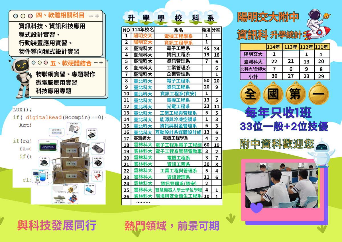 國立陽明交大附屬竹北高中 資訊科,您最佳的選擇 :113學年度招收一班 35位